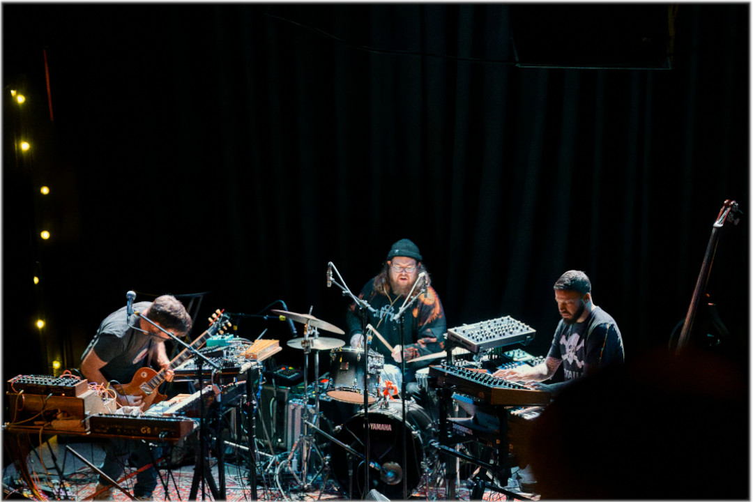 Electronic entropic rock music, using improvisations,guitar, bass, drums, electronics, FM radio, glockenspiel, samples….